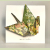 This lovely origami inspired pin features the Japanese crane, symbolizing happiness and long life. It is folded 22 times from a 4.5" square of Japanese Yuzen paper. It has a sculptural quality with a depth of 1-1.5". The paper is coated with a polycrylic medium to provide added durability and moisture resistance. Materials include paper and a brass pin backing. Size: 3"(h)x 3"(w)x1"(d)